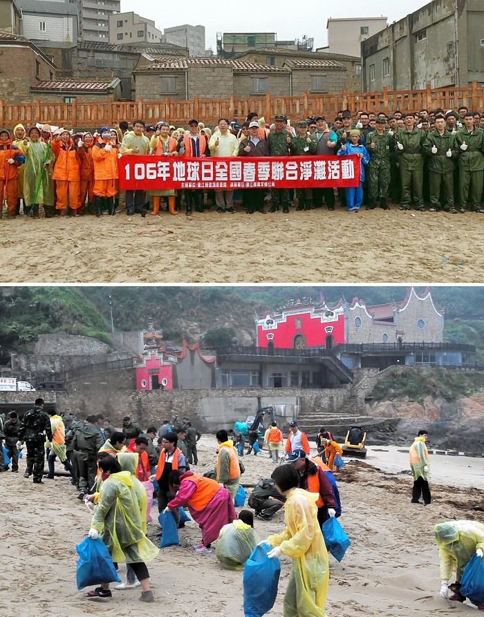 【記者曹重偉報導】為響應地球日,連江縣環境資源局18日與馬祖防衛指揮部聯合舉辦106年度地球日全國春季聯合淨灘活動,南竿鄉公所職員及多位環保志工亦到場參加;縣長劉增應、指揮官楊海明專程到場參加,並與大家一起彎腰淨灘,為潔淨馬祖貢獻心力。