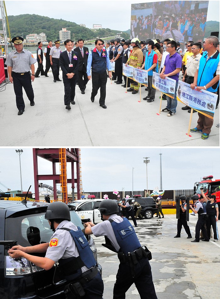 【記者曹重偉報導】106年連江縣福澳港港安、海難災害防救暨海洋油污染防治演習27日震撼登場!在交通部航港局會同連江縣政府、連江縣警察局、消防局等單位聯合演出之下,完成一場包括港區防制劫持及破壞演習、海難應變及人員落海救護演習、海洋油污染事故防制演習的港安演練,過程逼真流暢,獲得航港局長謝謂君、縣長劉增應、議長張永江等來賓一致肯定,也象徵地區港埠維安及民眾安全更有保障。