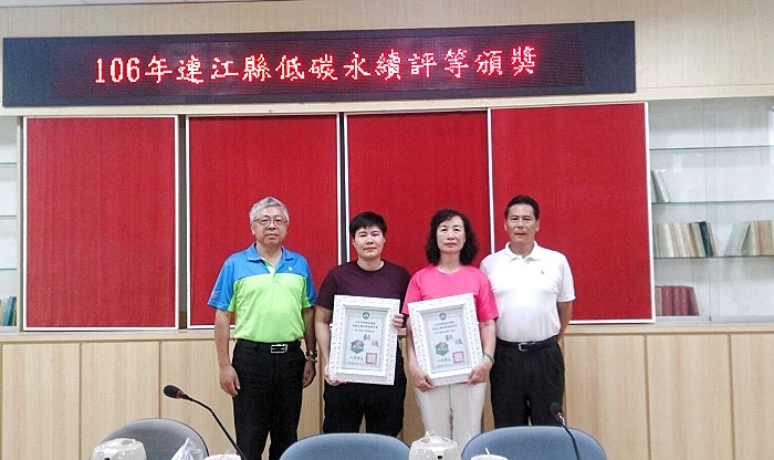 【記者曹重偉報導】連江縣環境資源局過去幾年在推動低碳永續家園工作成效斐然,105年度共有2個村莊獲得環保署肯定,得到銅級低碳社區認證,分別是南竿鄉介壽村及北竿鄉塘岐村;環資局3日上午特別選在主管週報之前,由副縣長王忠銘轉頒認證獎狀給兩位社區代表,與會主管們一起見證榮耀的一刻。