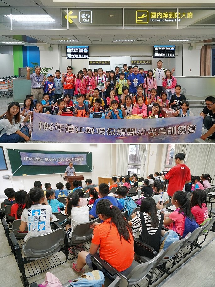 環資局今年度暑期環保小尖兵訓練營移師台中舉辦,昨天上午歡樂啟程,40位學員們一早從南竿機場搭機前進中台灣,下午前往台中市朝陽科技大學環境教育中心進行開訓,展開為期4天3夜的訓練營活動。